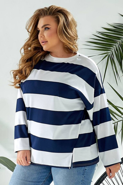 Світшот жіночий в смужку, колір біло-синій, 257R332-2, Запорізька область