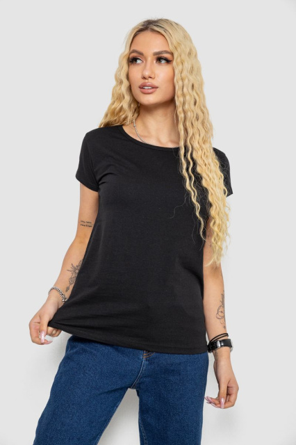 Футболка жіноча однотонна, колір чорний, 244R2206, Запорізька область