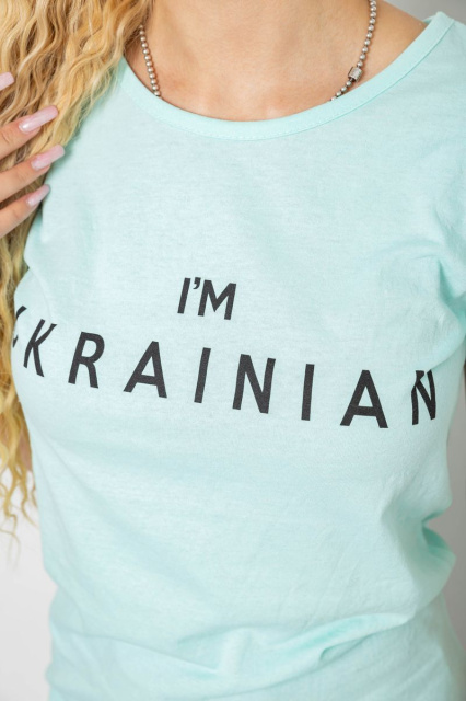 Футболка жіноча з патріотичним принтом, колір м'ятний, 244R2213, Запорізька область