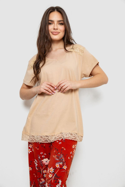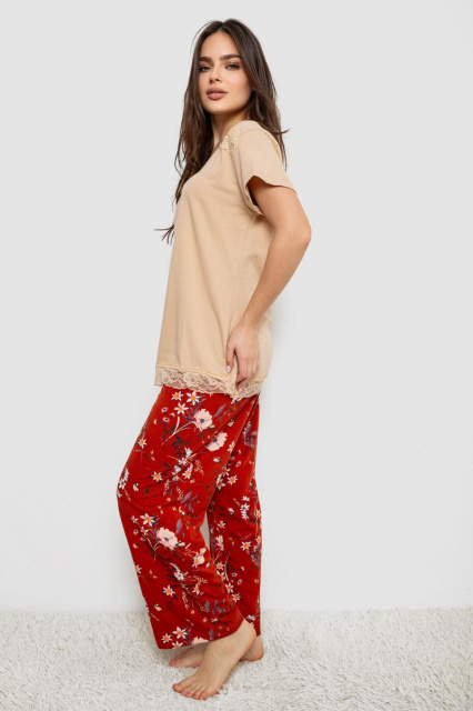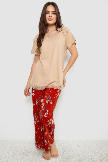 Жіноча піжама з принтом, колір бежевий, 243R1600-013, Запорізька область