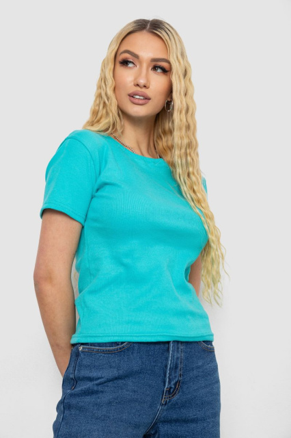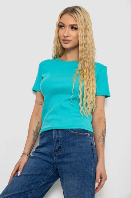 Футболка жіноча в рубчик, колір бірюзовий, 238R123-1, Запорізька область