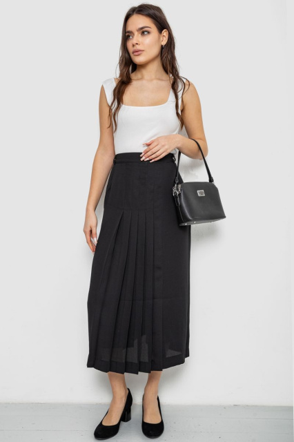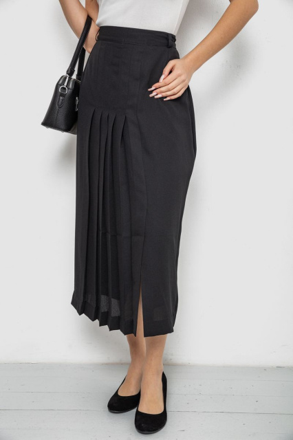 Спідниця на підкладці з розрізом, колір чорний, 167R5291, Запорізька область