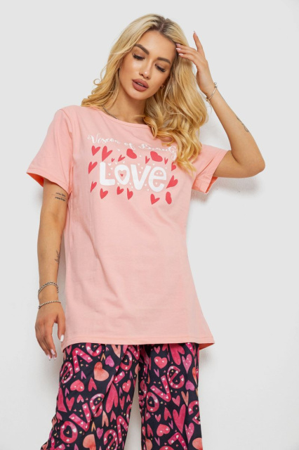 Піжама жіноча з принтом, колір персиковий, 243R10388, Запорізька область