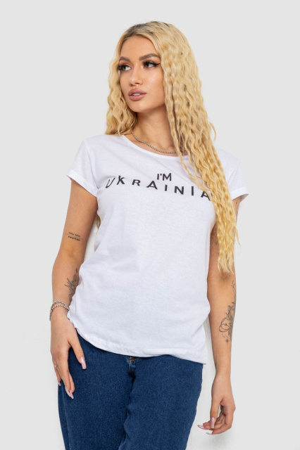 Футболка жіноча з патріотичним принтом, колір білий, 244R2213, Запорізька область