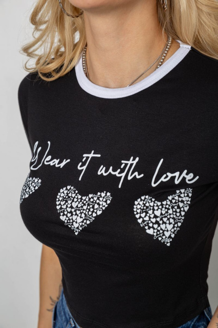 Футболка-топ жіноча з принтом, колір чорний, 244R504, Запорізька область